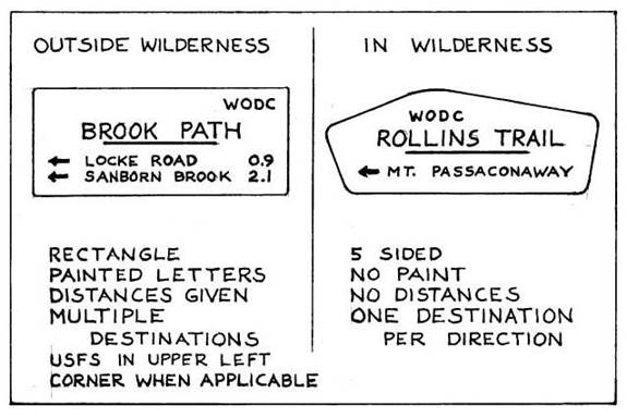 Chapter IIISHOWING THE WAYBlazing and SigningWith all the various controversial issues inherent to backcountry management, it seems odd that such a simple matter as trail marking should cause so much debate. The spectrum of opinion runs from the "blitzkrieg" method where paint consumption rivals the mileage of the worst gas guzzlers to the "natural selection" theory of weeding out the unwary hikers by losing them in the woods. It is also somewhat puzzling that after decades of refining and standardizing by the benevolent giants (ATC, AMC, USFS, etc.), a significant amount of hikers and even some trail maintainers are not familiar with the conventions of trail marking. Perhaps a brief history of the evolvement of trail blazing would help clear things up.